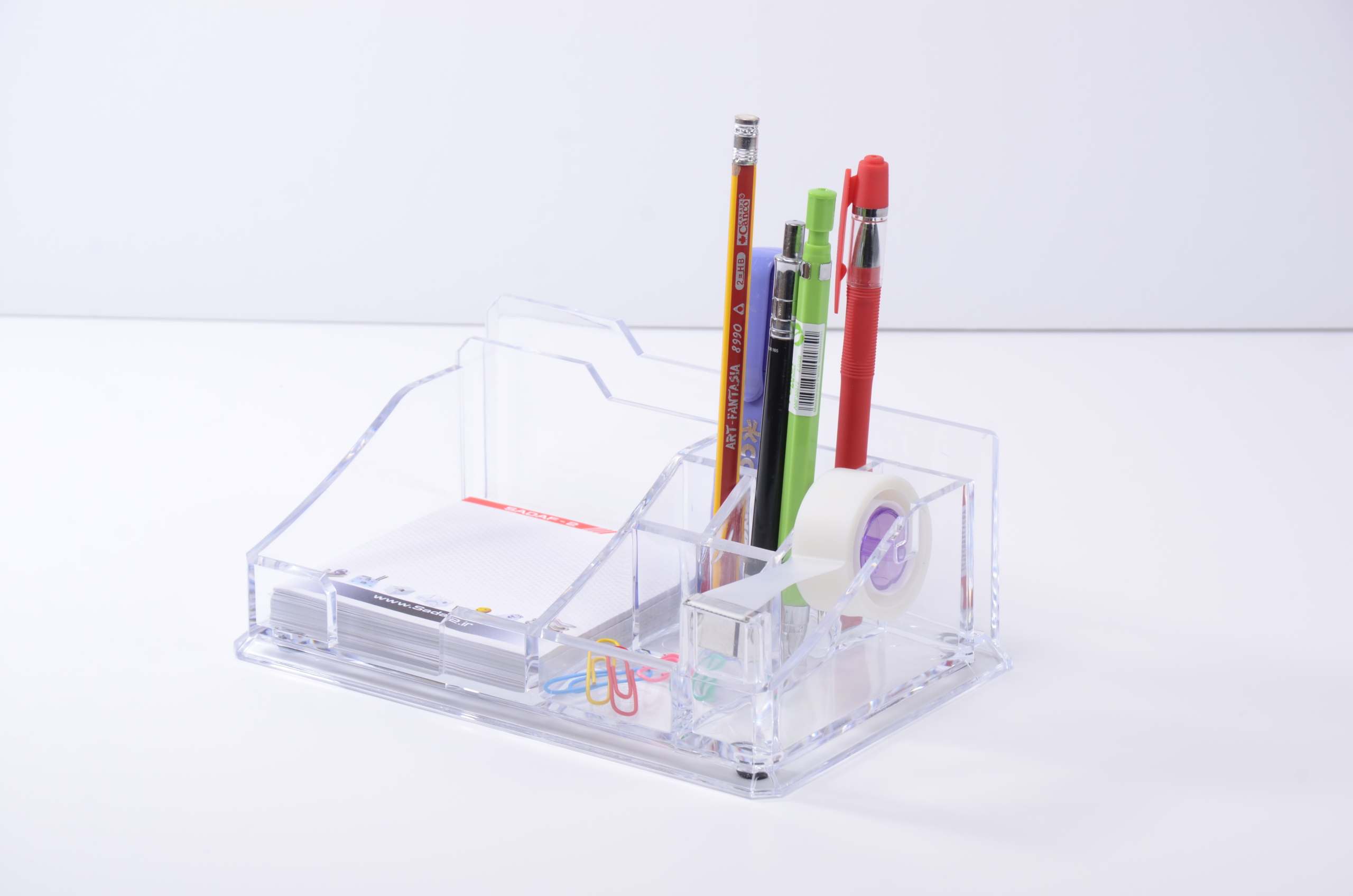 از جمله محصولات تولیدی این مجموعه می‌توان به پایه چسب رومیزی، جای کاغذی (کازیو)، نظم‌دهنده‌های اداری و سایر لوازم اداری پلاستیکی اشاره نمود. تمامی محصولات با استفاده از مواد اولیه مرغوب و از طریق فرآیند تزریق پلاستیک دقیق تولید شده و از نظر کیفیت ساخت و کاربری، مورد کنترل و بررسی قرار می‌گیرند.
